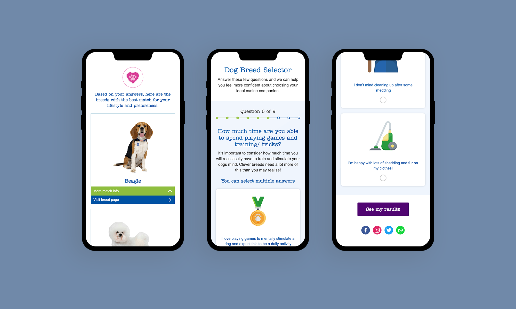 Have you ever pondered which dog breed best suits your preferences? Petplan, one of the UK's leading pet insurers, sought to create an additional avenue to attract individuals who do not own dogs to their website. To achieve this, the Petplan team conceived the concept of a dog breed selector that generates results based on responses to a set of questions.